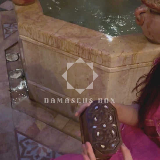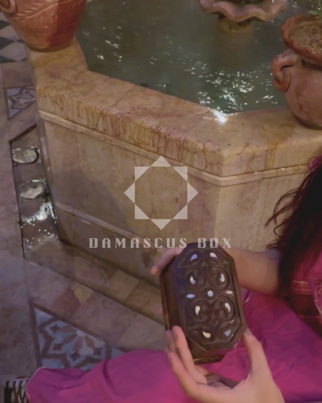 boîte en bois sculptée à la main, nacre, art damasquin, bois oriental, artisanat syrien, finition noyer, Damascus Box