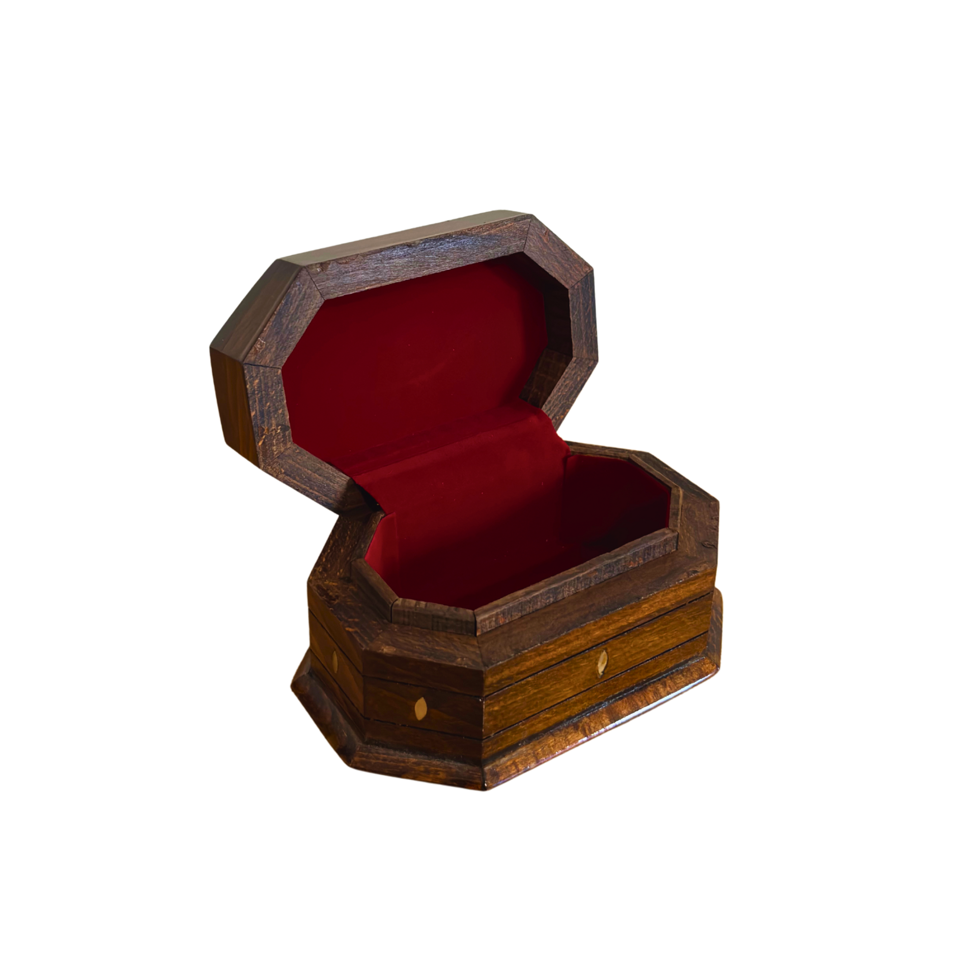 Handgesneden Beukenhouten Doos met Parelmoer – Elegantie in Walnootafwerking