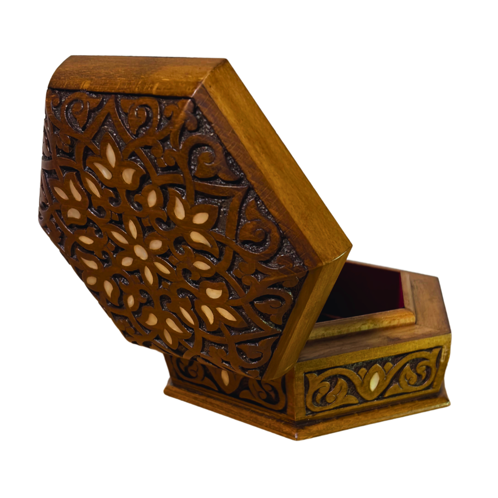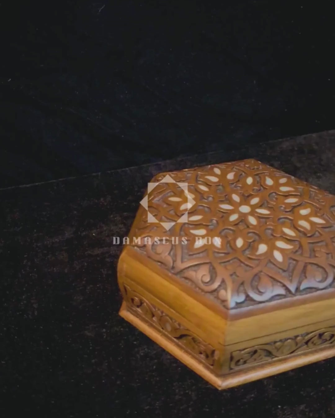 rzeźbiona szkatułka, szkatułka z masą perłową, rzemiosło z damaszku, luksusowa szkatułka, sześciokątna szkatułka, Damascus Box