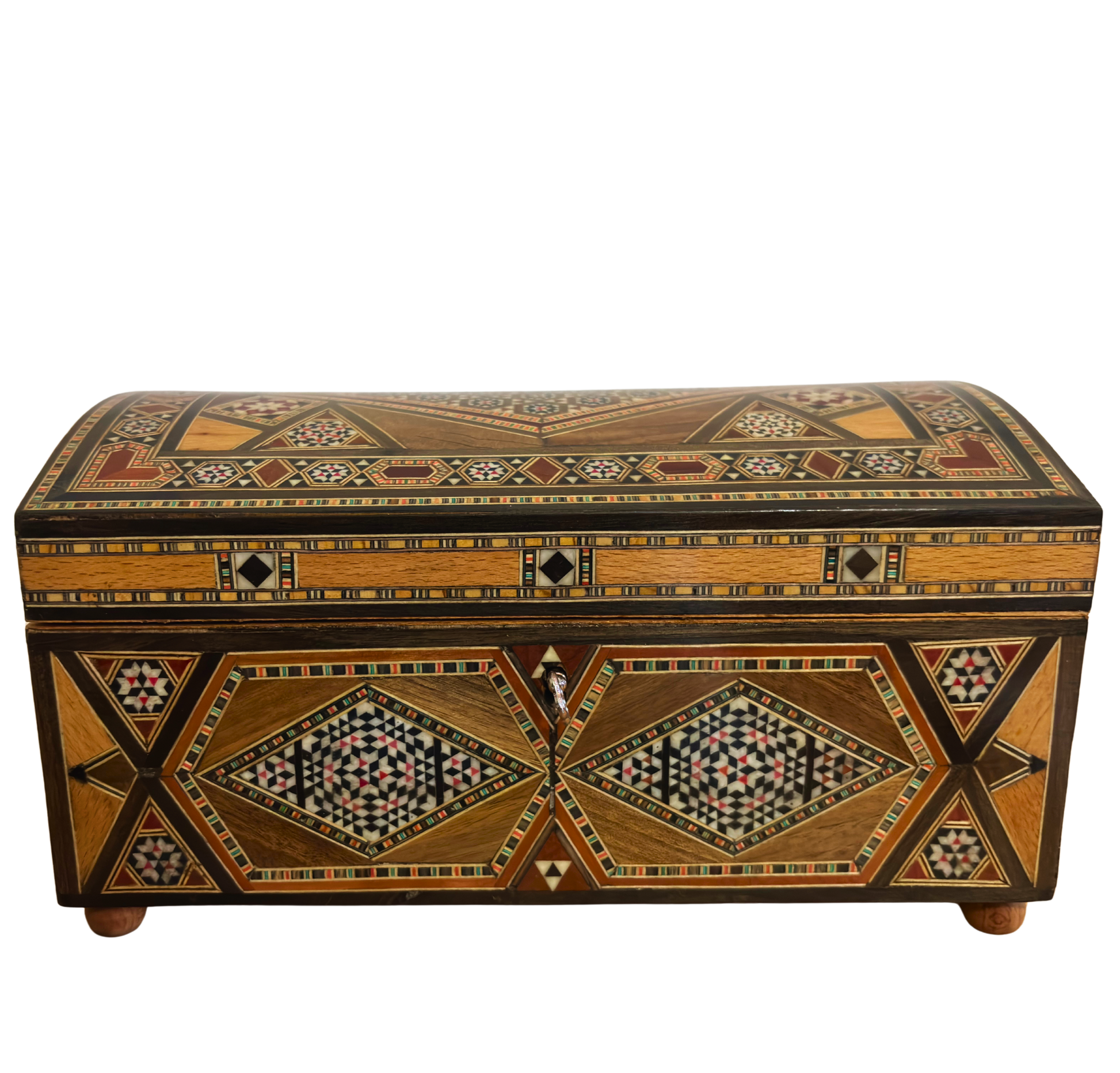 Caixa mosaico damascena vintage 1970 – Multinível com fechadura e chave | Única no seu género